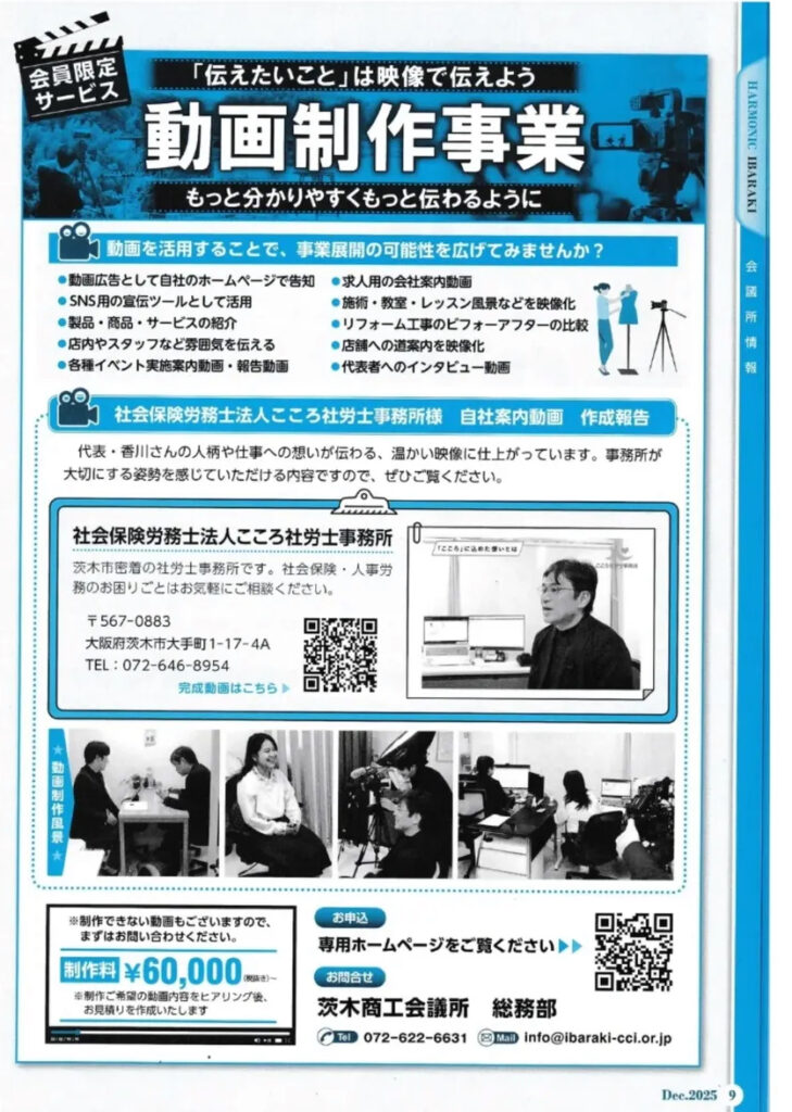 今回は、私も会員として所属している茨木商工会議所のビジネスサポートサービス「動画制作事業」についてご紹介します。
